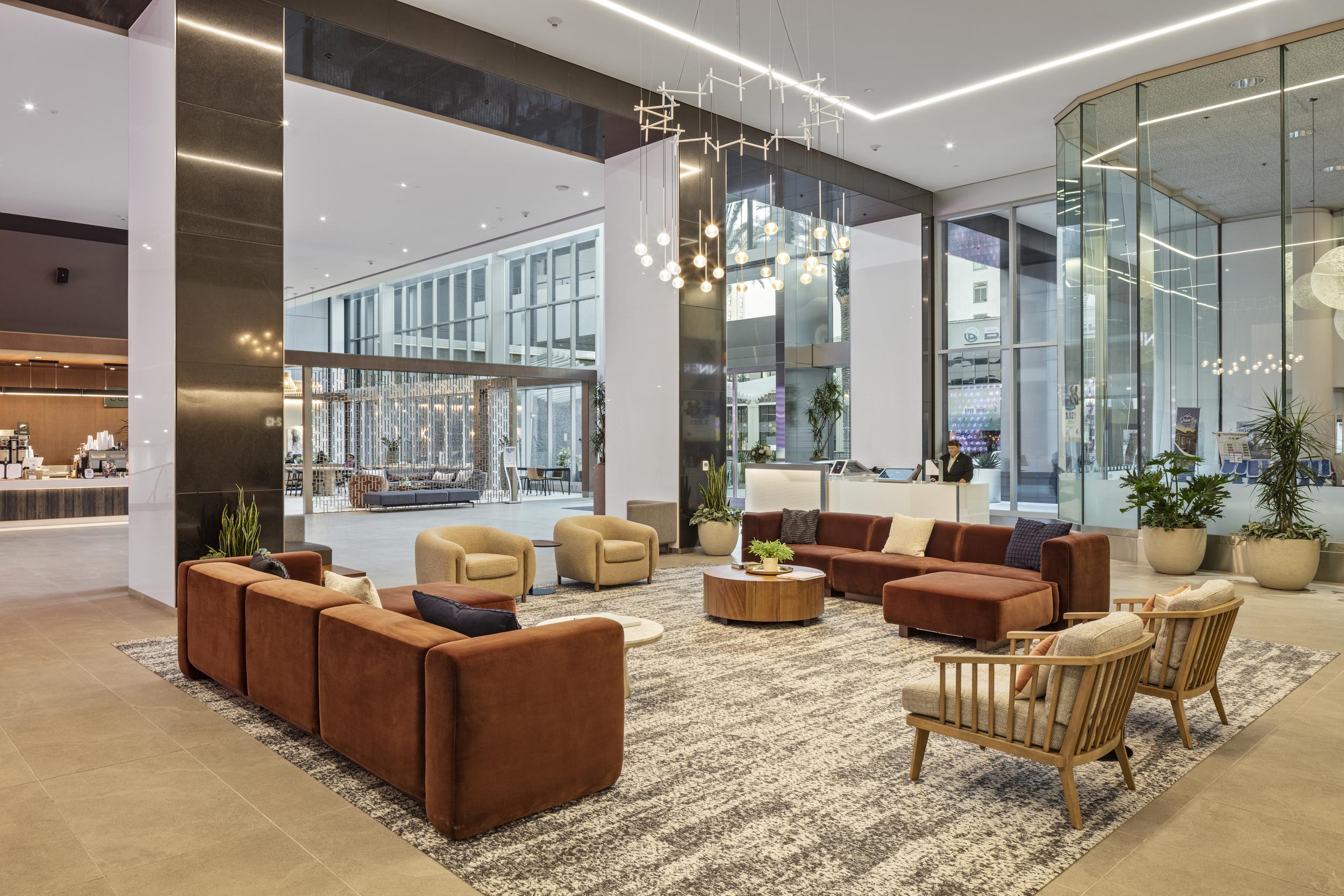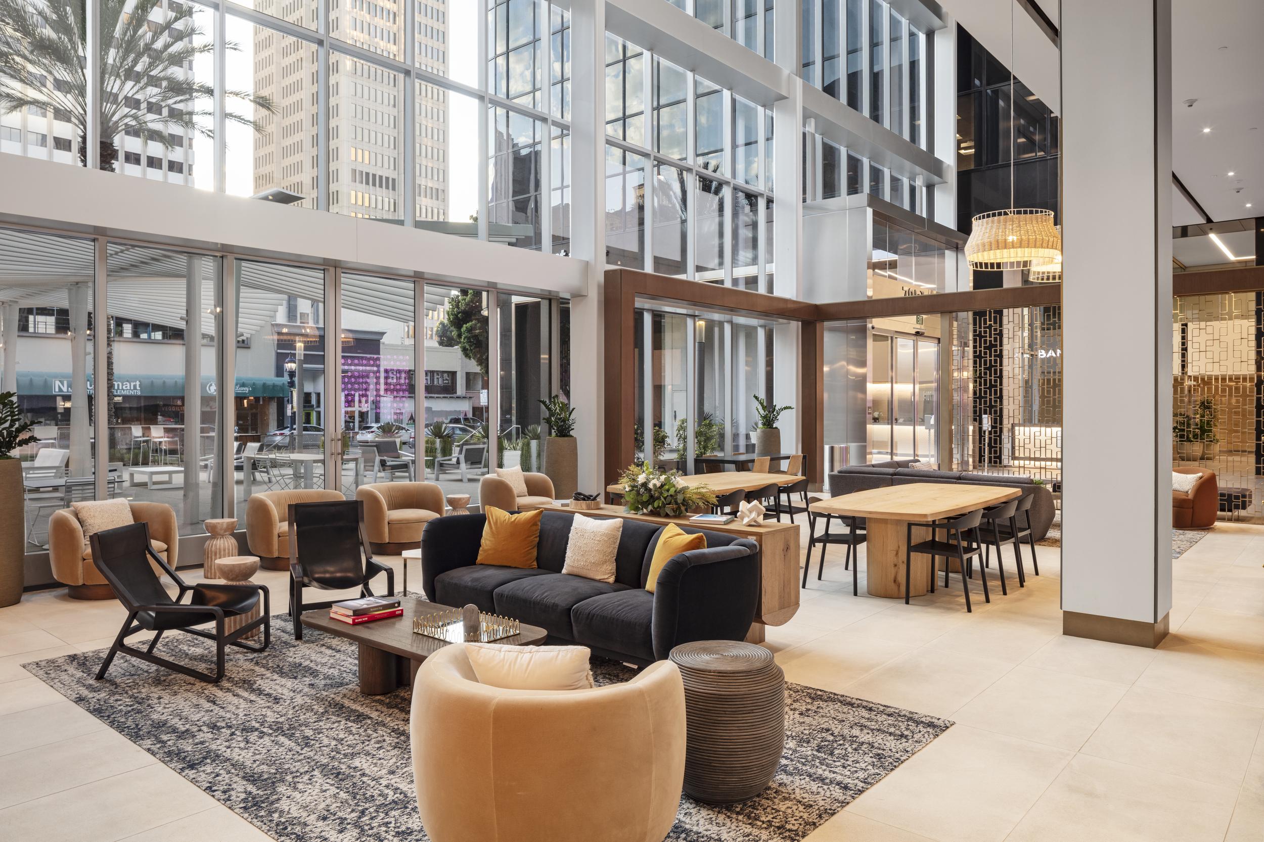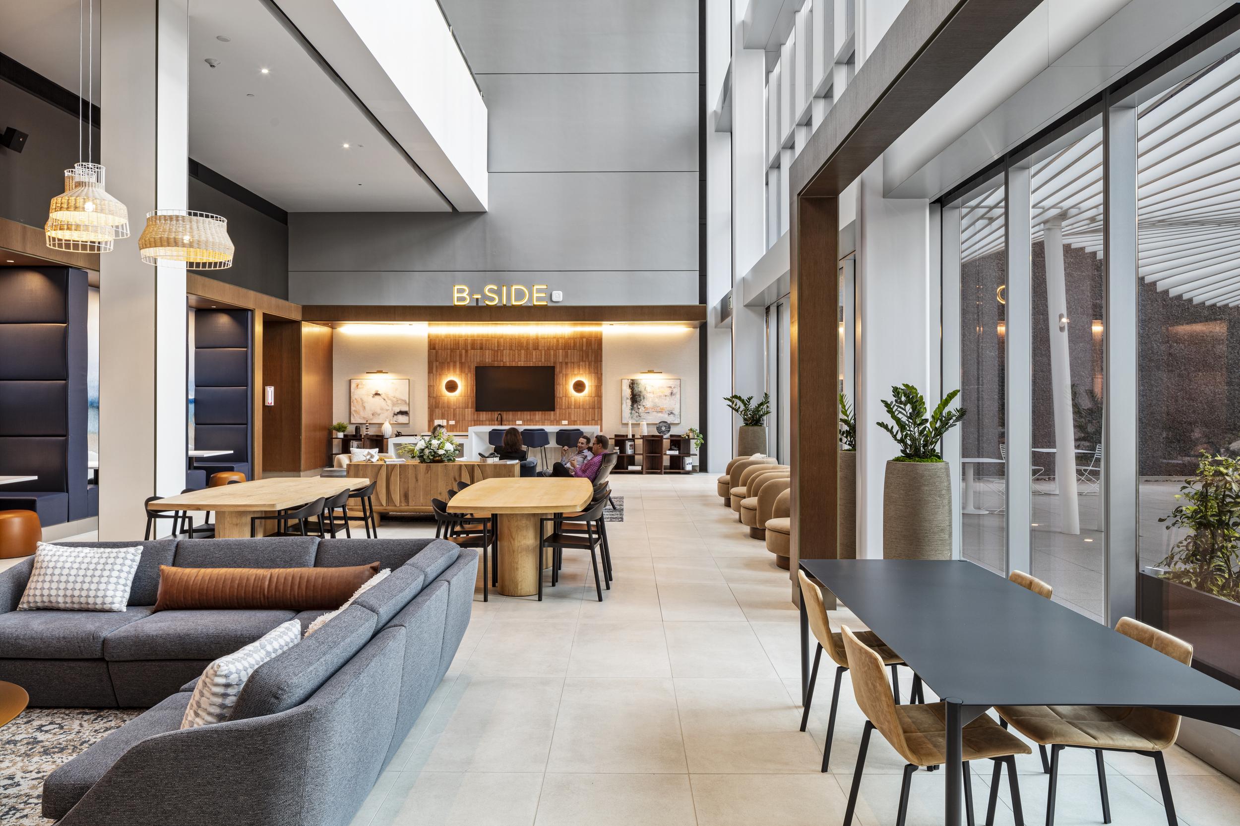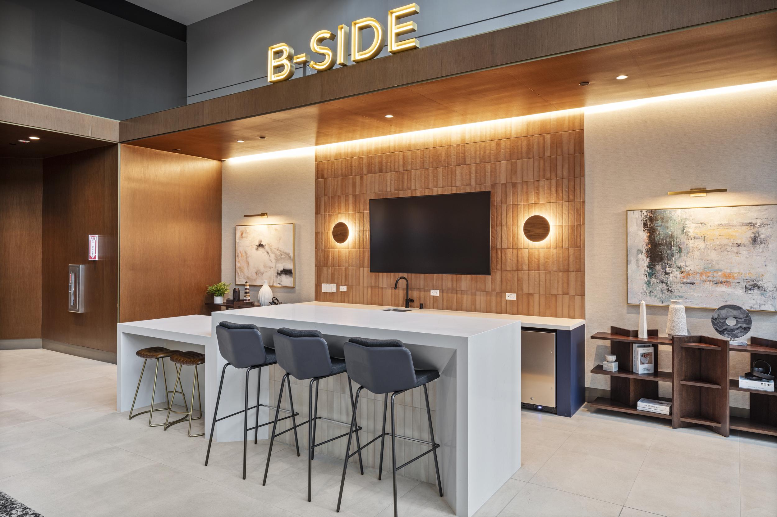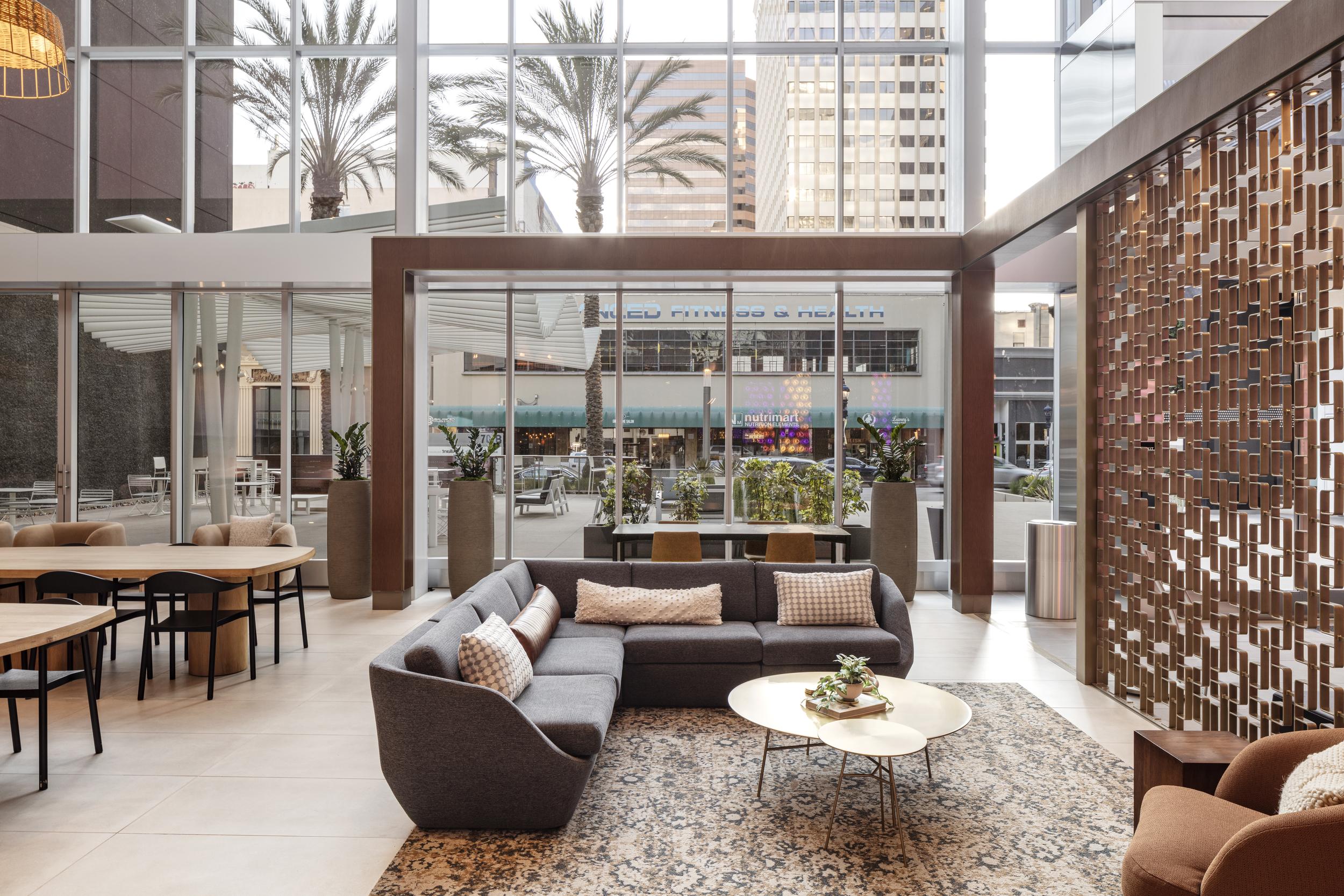 Outdoor Patio with Seating, Dining Areas, and Waterwall Feature